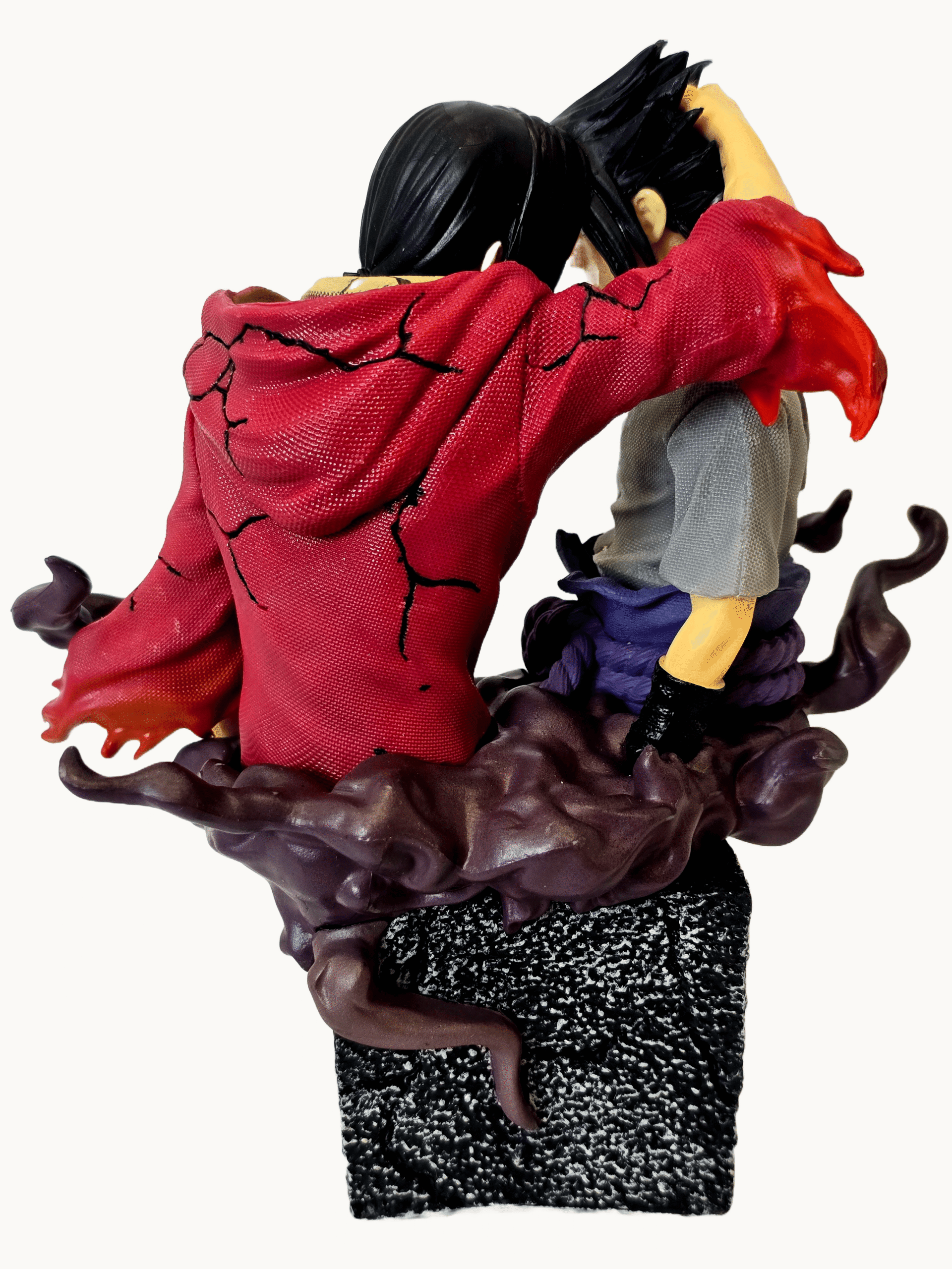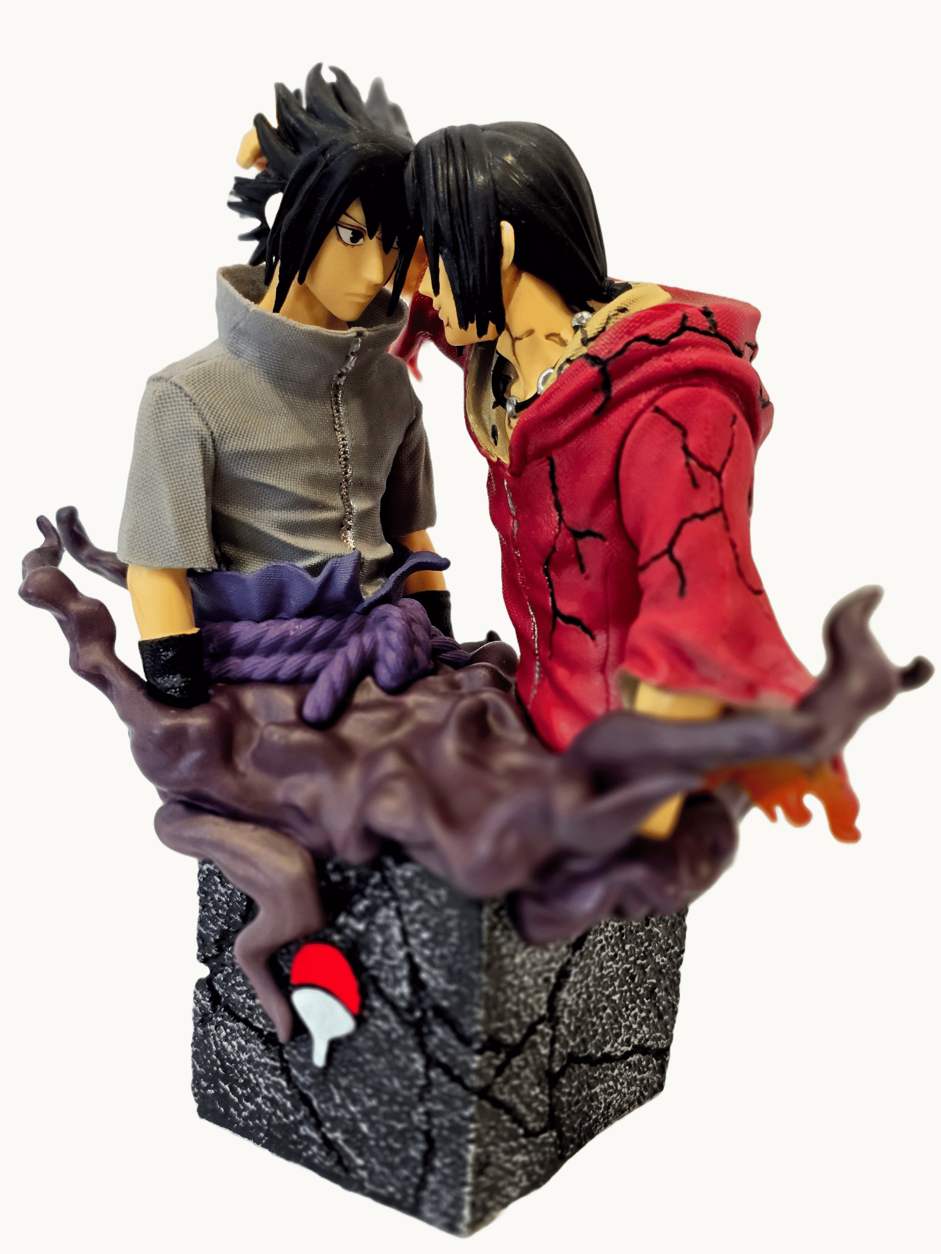 Locked in a moment of destiny, this striking figure captures two legendary ninja brothers facing each other in a whirlwind of emotion, power, and battle intensity. The sculpt freezes their dramatic clash—one calm and composed in the shadows, the other driven by raw determination—creating a scene that feels like it’s pulled straight from an unforgettable showdown. Their cloaks, weapons, and energy effects swirl together, showing both conflict and connection in a single powerful display. Crafted with sharp detailing and deep contrasting colors, this piece stands as a tribute to their iconic bond and rivalry.