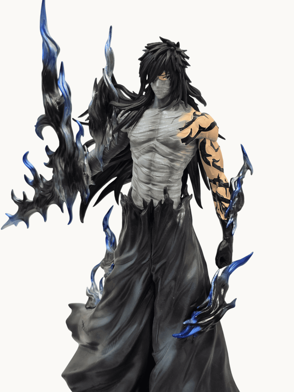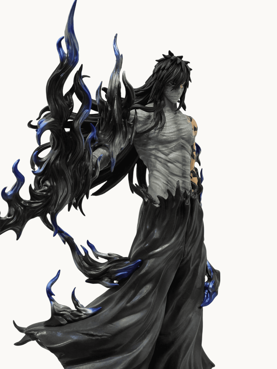 High-Detail Sculpt: Spiky hair, flowing robes, and intense facial expression.