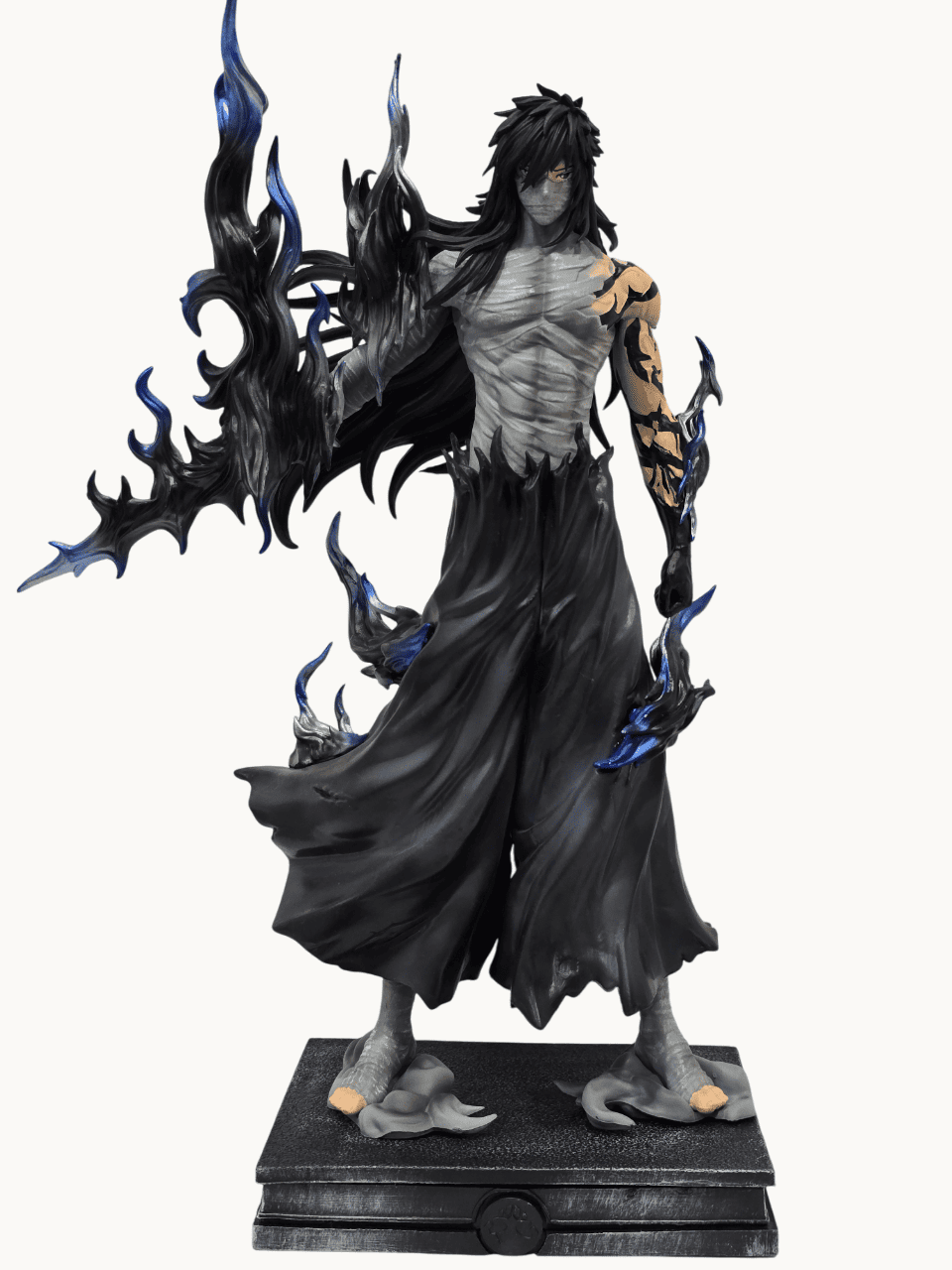 The Soul Reaper Vanguard charges forward with fearless resolve, wielding his massive black-edged blade in a dynamic, battle-ready stance. His spiky hair, flowing coat, and fierce expression are sculpted with striking accuracy, capturing the raw intensity of a warrior caught between soul and hollow power. A translucent red-and-black aura surrounds him, amplifying the sense of unleashed energy. Crafted from durable ABS/PVC with a hand-painted finish, this collectible radiates power from every viewing angle. A must-have for fans of heroic, transformation-driven fighters.